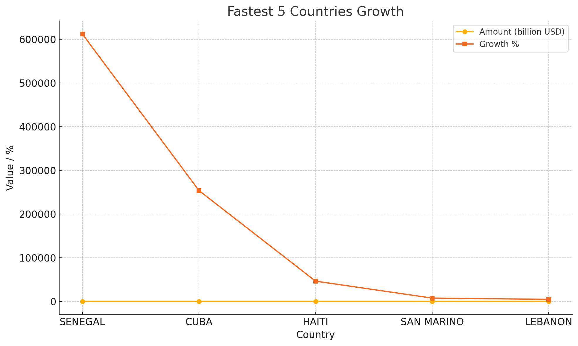 从进口增幅来看,塞内加尔、古巴、海地、圣马力诺与黎巴嫩分列增长最快国家前五名,增幅均超4000%。塞内加尔本月进口总额达到36万美元,环比暴增逾6,000倍,虽绝对金额尚小,但释放出墨西哥对非洲与加勒比地区部分特色资源或医药原材料的新增需求。古巴与圣马力诺增长幅度也达到惊人水平,显示墨西哥企业正在探索更加多元化的供应链布局。.png)