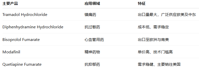 印度API出口以镇痛、心血管及精神类药物原料为主。