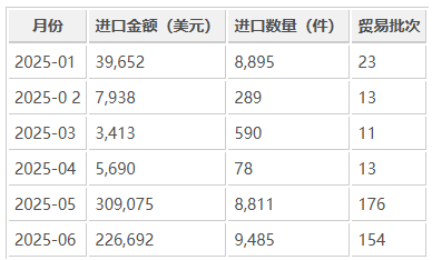 2025年上半年,哥伦比亚传感器进口呈现显著的季节性增长趋势。从数据来看,5月与6月是进口高峰期: