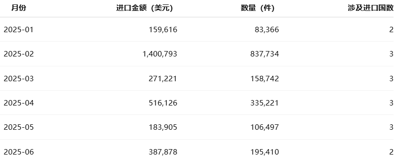 进口量超过 170 万件,显示消费需求旺盛;