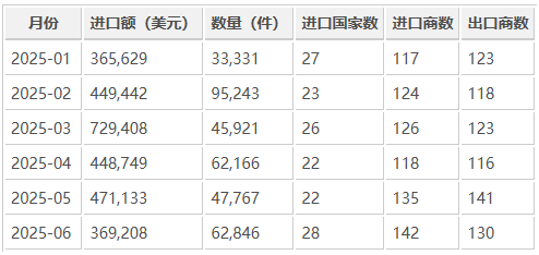 3 月份的集中增长主要源自汽车售后零部件与工业设备维保项目的补货需求。此后进口额虽略有回落,但整体维持在高位,显示出滤清器市场的长期稳定性。