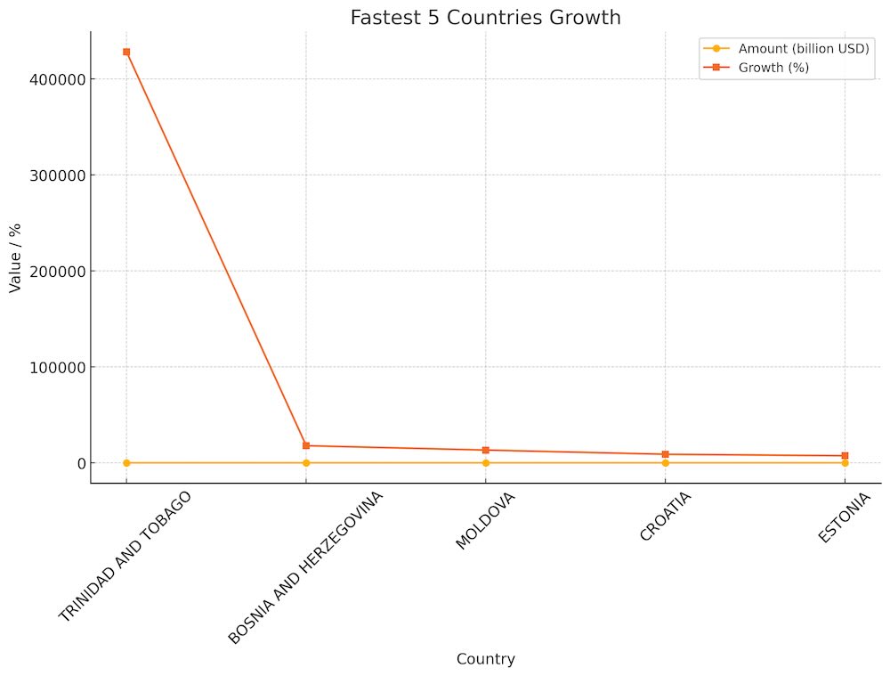 在进口增长最快的国家中,特立尼达和多巴哥环比暴增至4279倍,尽管基数极小,但显示新市场正在突破原有边界。波黑、摩尔多瓦、克罗地亚和爱沙尼亚的增幅均超过70倍,表现出区域采购多样化趋势,值得关注相关行业背后的转单逻辑和供需重构。