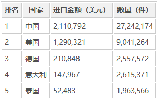 印度塑料瓶盖进口来源以亚洲国家为主,中国保持显著领先,其次为美国与欧洲部分制造商。
