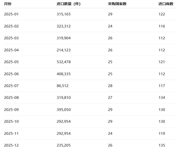 从数据可以看出,5–6 月的进口量显著上升,与区域组装厂的季节性补货有关。而 7 月的显著下降,可能受海运周期与库存调整影响。进入下半年后,进口保持在每月 20–30 万件之间,显示需求稳定。