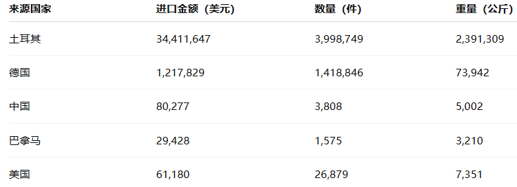 可以看出,CADAFAZ 的进口结构高度集中于土耳其,占其总额的 90% 以上,显示该企业与土耳其供应链的紧密绑定。德国与中国则是其关键的高端与补充件来源,体现了多层次供货体系的成熟。