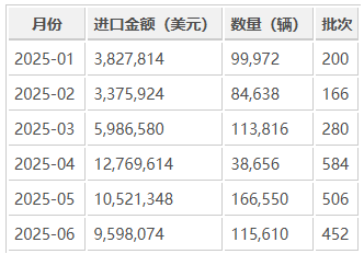 可以看出,4月至6月为牵引车进口的集中高峰期,三个月合计进口金额超过 3,288 万美元,约占半年总额的七成。