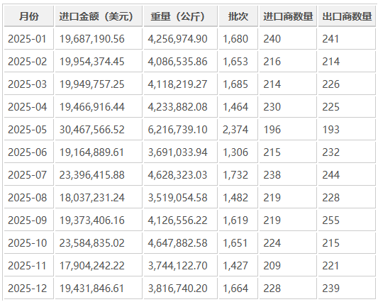 本文数据来源于 纽佰德数据,基于孟加拉海关及全球贸易数据库的进出口记录整理,时间区间为 2025 年 1 月 1 日至 2025 年 12 月 31 日。更多数据服务可访问 https://www.nbd.ltd/service。