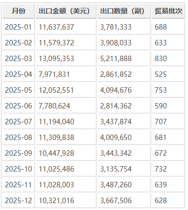 可以看到,出口高峰出现在 3月、5月与8月,这与欧美市场的采购周期密切相关。第三季度后,出口趋于稳定,反映出手套类产品在全球防护与劳动用品领域的持续需求。