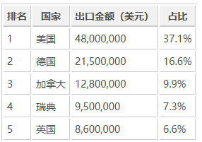主要出口企业包括:
