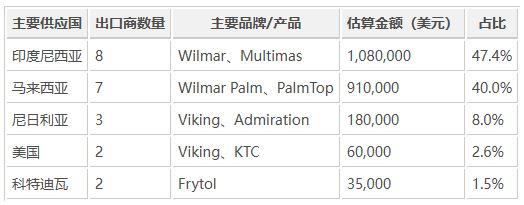 从出口端来看,加纳进口食用油的主要供应商集中在亚洲,尤其是印尼与马来西亚。前几大核心供应商如下: