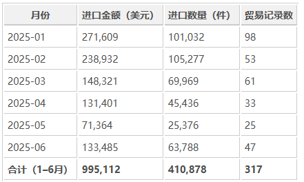 从月度走势来看,乌兹别克的电热水壶进口在上半年经历了一个由低到高的波动增长过程。特别是 1 月和 2 月进口量较高,反映出年初市场库存补充需求强劲。随后 3–5 月进口略有回落,而 6 月再次回升,显示出节前消费及商家备货的影响。
