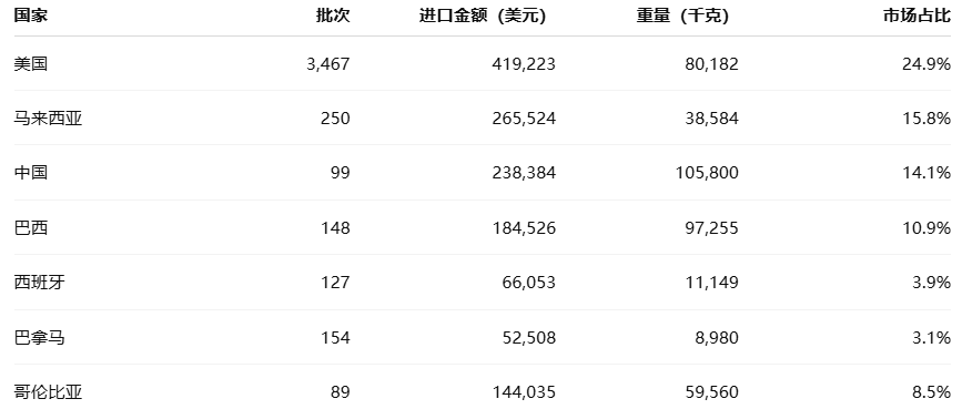 从地区分布来看,哥斯达黎加的木制家具进口集中度较高,美国仍为绝对核心市场: