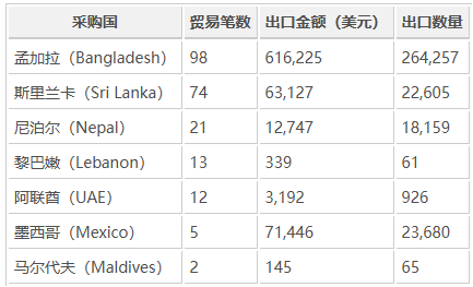 从趋势上看,出口呈现明显的季节性波动。4月至5月期间订单激增,与孟加拉和斯里兰卡两国净水产品需求扩大密切相关。这一阶段气温升高、干旱加剧,使家庭和商用净水设备的维护与更换部件需求同步增长。