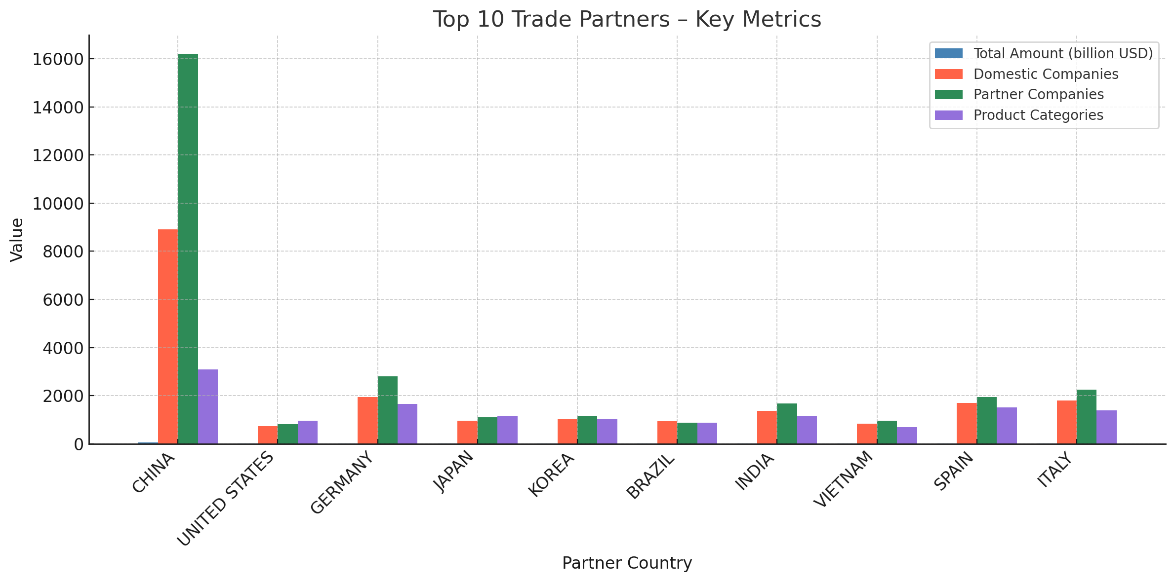 韩国、巴西、印度、越南、西班牙和意大利则构成第二梯队,金额区间在4.15亿至9.41亿美元之间。整体来看,这六国虽总额不及前四,但在特定垂直领域仍具有技术优势。例如印度与越南在化工与纺织领域的出口维持稳定,而意大利与西班牙则在机械设备与食品领域与墨西哥保持高频交易。.png)