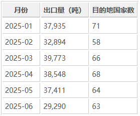 从趋势来看,3月至5月为出口高峰期,主要因为此阶段为欧洲及亚洲食品企业采购原料的集中窗口。尽管6月略有回落,但整体出口量仍高于2024年同期水平。