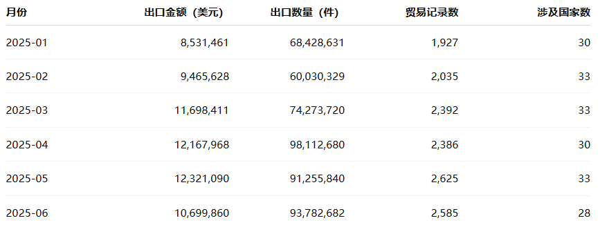 相较金额与数量指标,数量的月度波动相对更平稳,更能反映真实出货节奏,因此以下表格以数量为核心指标进行展示: