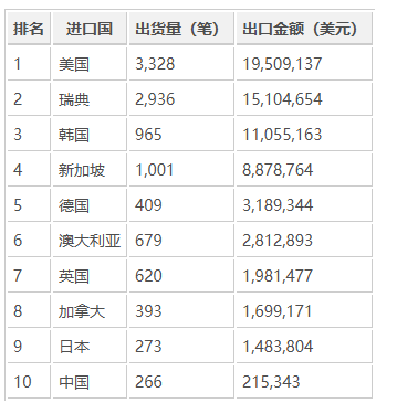 其中,美国与瑞典的合计占比超过 45%。美国市场需求集中于中高端时尚品牌,如 GAP、Banana Republic、DKNY 等;而瑞典的出口则几乎全部由H&M体系贡献。韩国与新加坡则发挥了区域集散地作用,部分订单再出口至东亚与中东市场。